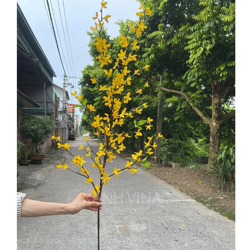 - Cành hoa mai giả cao 100cm gồm 5 nhánh nhỏ, tán xòe tự nhiên, màu vàng tươi rực rỡ mang hơi thở mùa xuân.