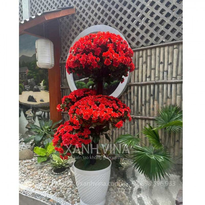 Hình ảnh cây hoa đỗ quyên đỏ thân gỗ được thiết kế theo yêu cầu của khách