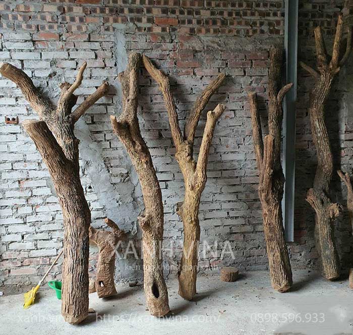Để thi công cây hoa anh đào giả có kích thước từ 2m trở lên thì ưu tiên chọn mẫu thân từ cây thân gỗ tự nhiên, có dáng uốn lượn nhiều cành và có tán vượn rộng