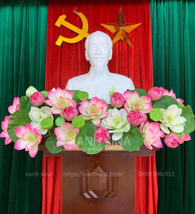 Hoa sen cao su giả trang trí bục tượng bác KT 90x700cm